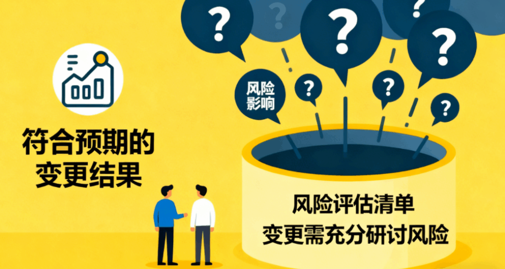 ✓即使变更取得了符合预期的结果,仍可能对与预期无关的部分产生影响。实施变更时,需根据变更内容及产品特性等进行充分研讨,确保无遗漏地评估应考虑的风险。